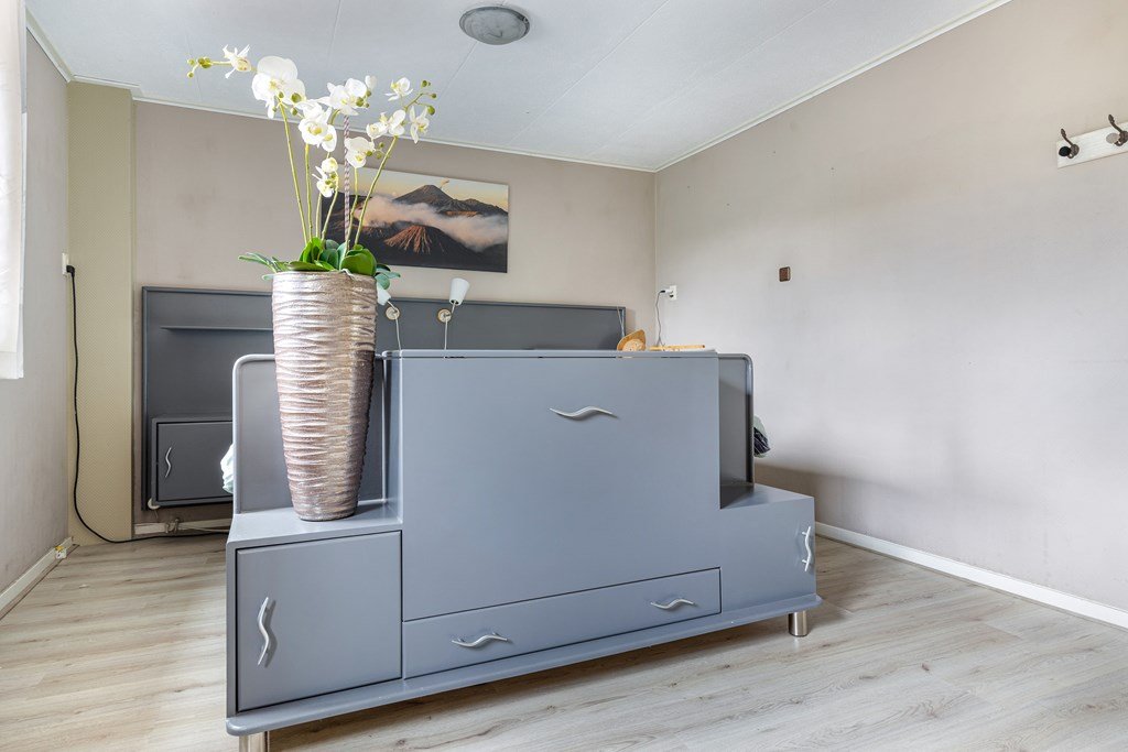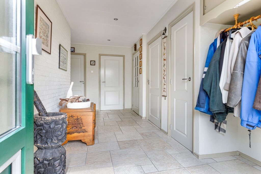 Bij binnenkomst door de voordeur betreedt je een royale hal. Aan de rechterkant de garderobe, meterkast, toilet en deur naar keuken en kamer. Verder in de hal aan de rechterkant inloopkast, badkamer met toilet, wastafelmeubel, inloopdouche en ligbad met whirlpool. Daarnaast een hobbykamer welke grenst aan de volledig betegelde bijkeuken. In de bijkeuken staat de 25Kwh thuis accu opgesteld en de witgoed aansluitingen. Ruime slaapkamer bevind zich aan de laanzijde.