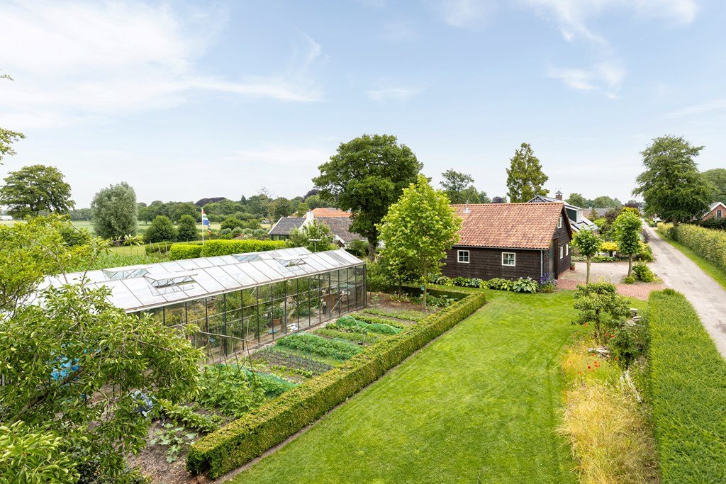 Rondom de woning is een prachtige tuin met grote kweekkas. De tuin is ideaal voor liefhebbers van natuur en buitenleven en is in verschillende delen opgesplitst. Hierdoor heb je overal weer een nieuwe kijk en maakt de tuin speels en aantrekkelijk, ook met de verschillende ornamenten. De sfeervolle vijvers vormen het hart van de tuin en trekt vogels en vlinders aan, wat zorgt voor een levendige en rustgevende sfeer. Voor de hobby tuinder is er een grote kas met fruitbomen, die perfect is voor het zelf kweken van groenten, kruiden of bloemen. Daarnaast is er een eigen waterbron geslagen voor het sproeien/watergeven in kas en tuin.
