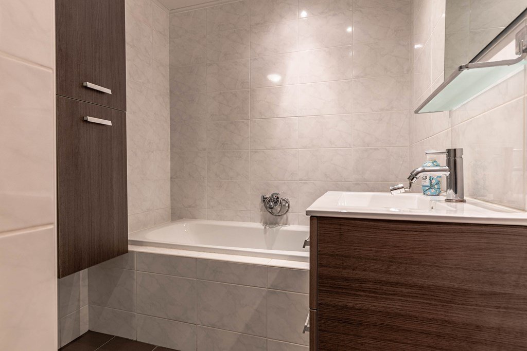 Via de ruime hal, die toegang geeft tot trapopgang, badkamer en separaat toilet, betreed je de woning. De badkamer is uitgerust met een ligbad en douche. De verbouwing van de badkamer dateert uit 2010.
