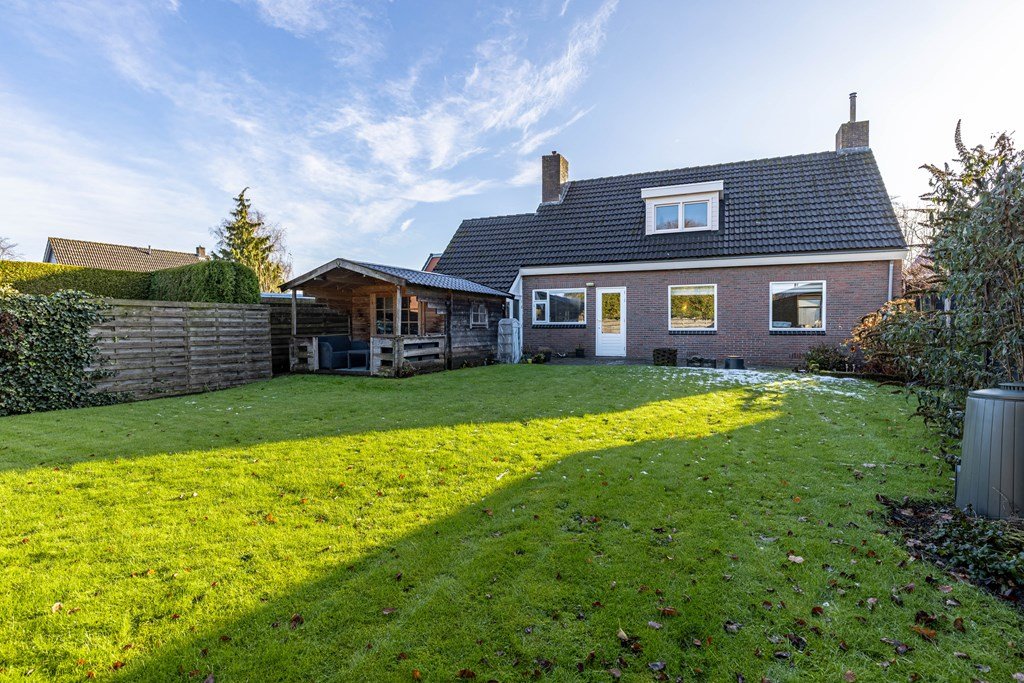 Achter de woning ligt een grote, beschutte tuin met een tuinhuis deels voorzien van een overkapping. Hier geniet je in alle rust van groen, zon en veel privacy. Een heerlijke plek voor lange zomeravonden, een moestuin, speelhoek of ontspanning.