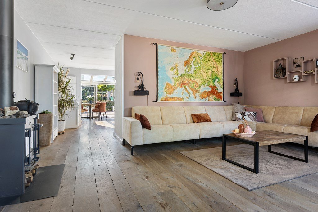 Entree met meterkast en toilet. Ruime, lichte woonkamer met massief eiken vloer en een Jacobus-houtkachel voor extra sfeer. De halfopen keuken is voorzien van een grote inductiekookplaat, vaatwasser, koelkast, vriezer en combi-oven. Aansluitend vind je de volledig geïsoleerde serre (2019) met schuifpui, glazen dak en zonwering, een heerlijke plek om het hele jaar door te genieten van licht en uitzicht op de tuin. Vanuit de bijkeuken (met wasmachineaansluiting) is de volledig geïsoleerde garage (2024) bereikbaar, voorzien van een geïsoleerde deur (2022) en krachtstroom.