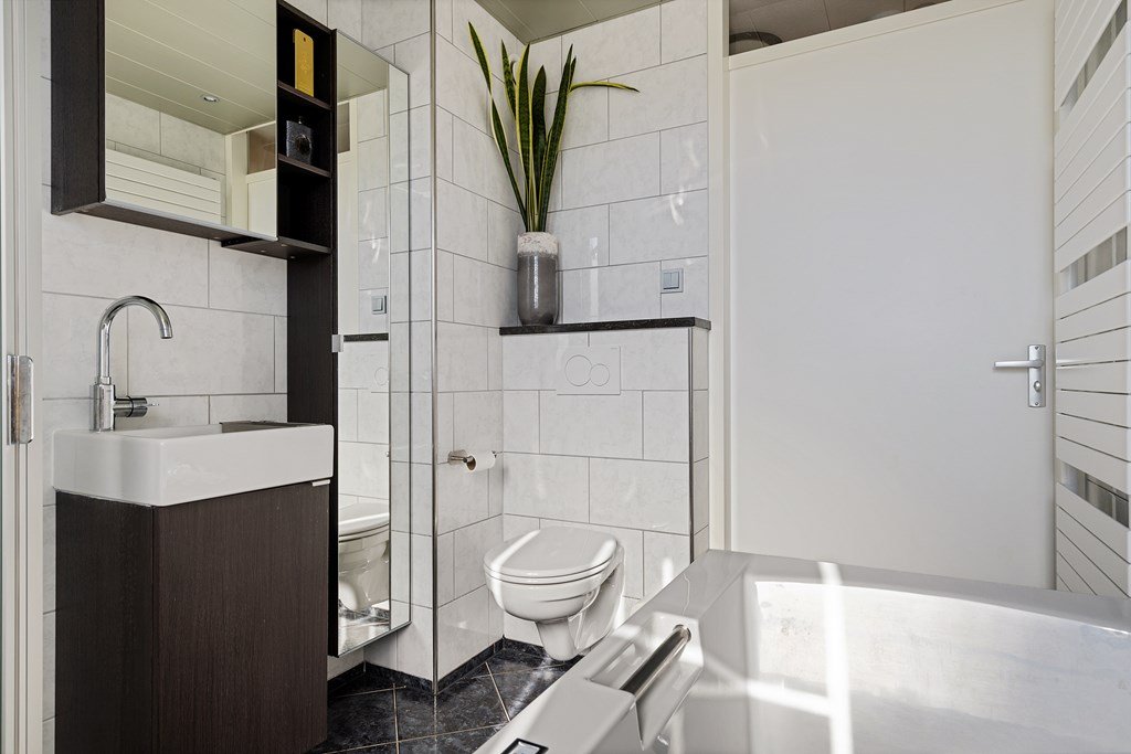 Overloop, drie slaapkamers en een moderne badkamer met (bubbel)ligbad, aparte douche en tweede toilet.
