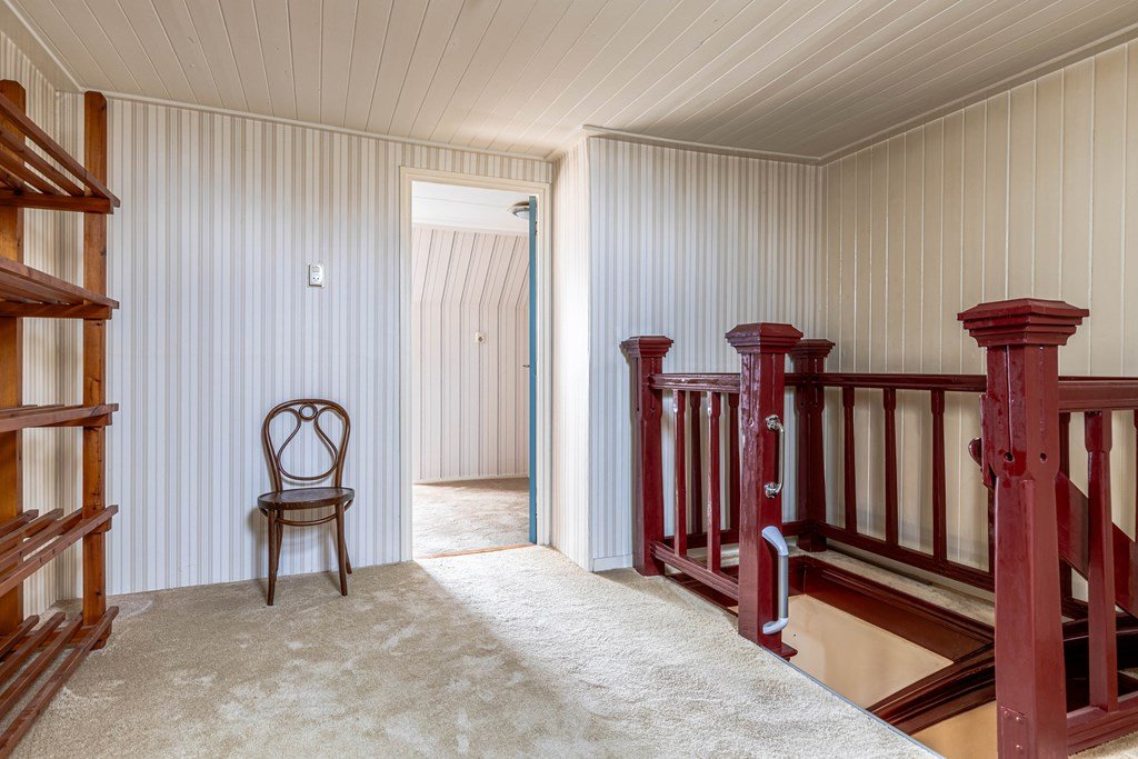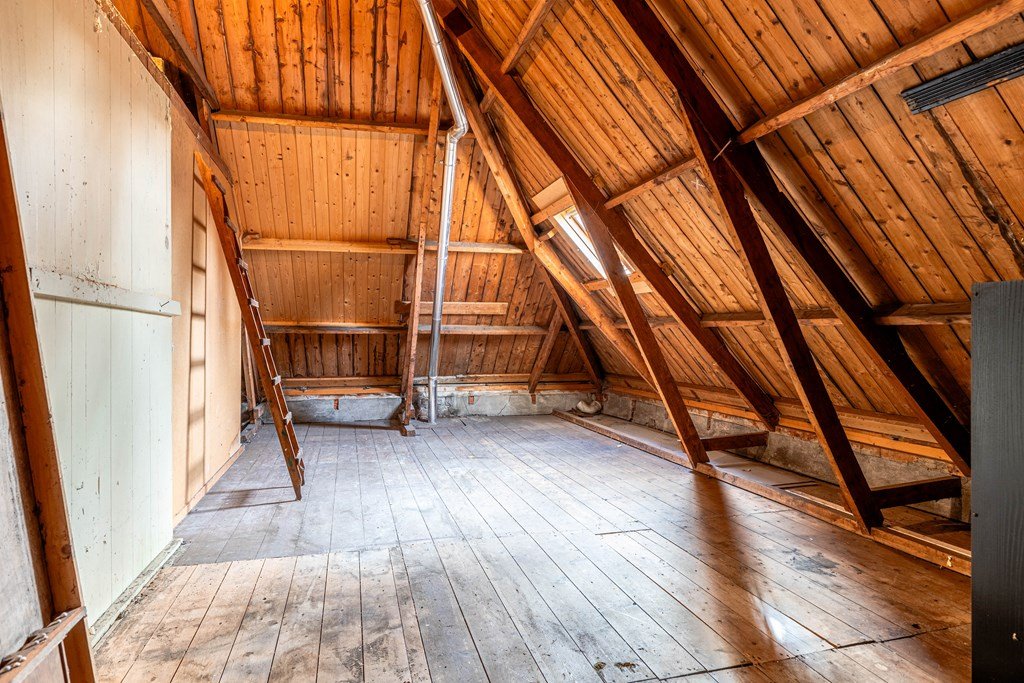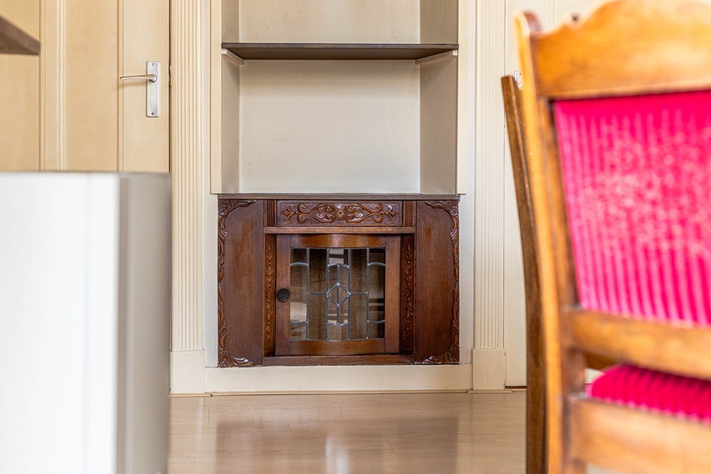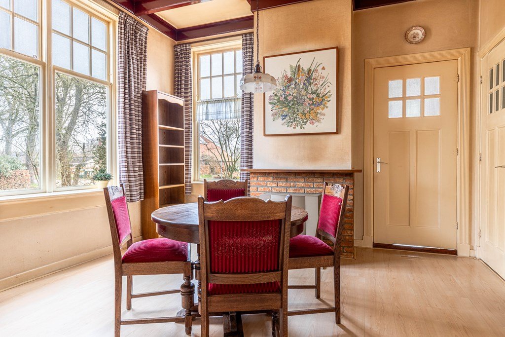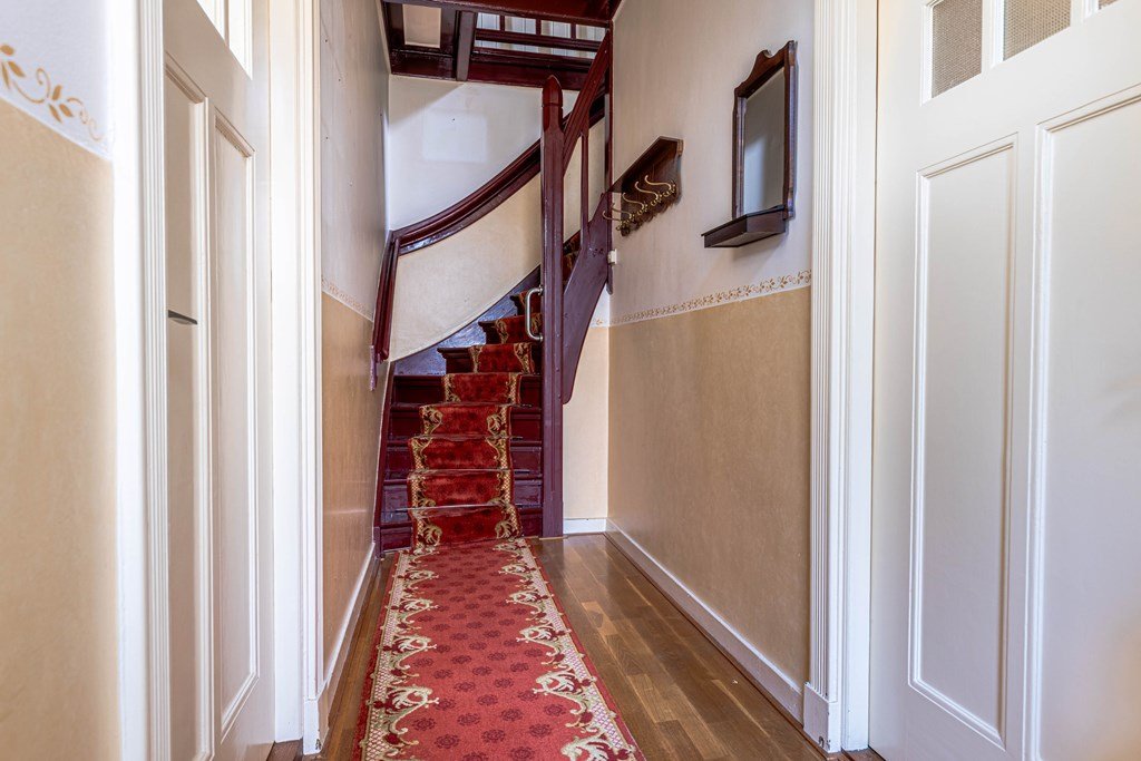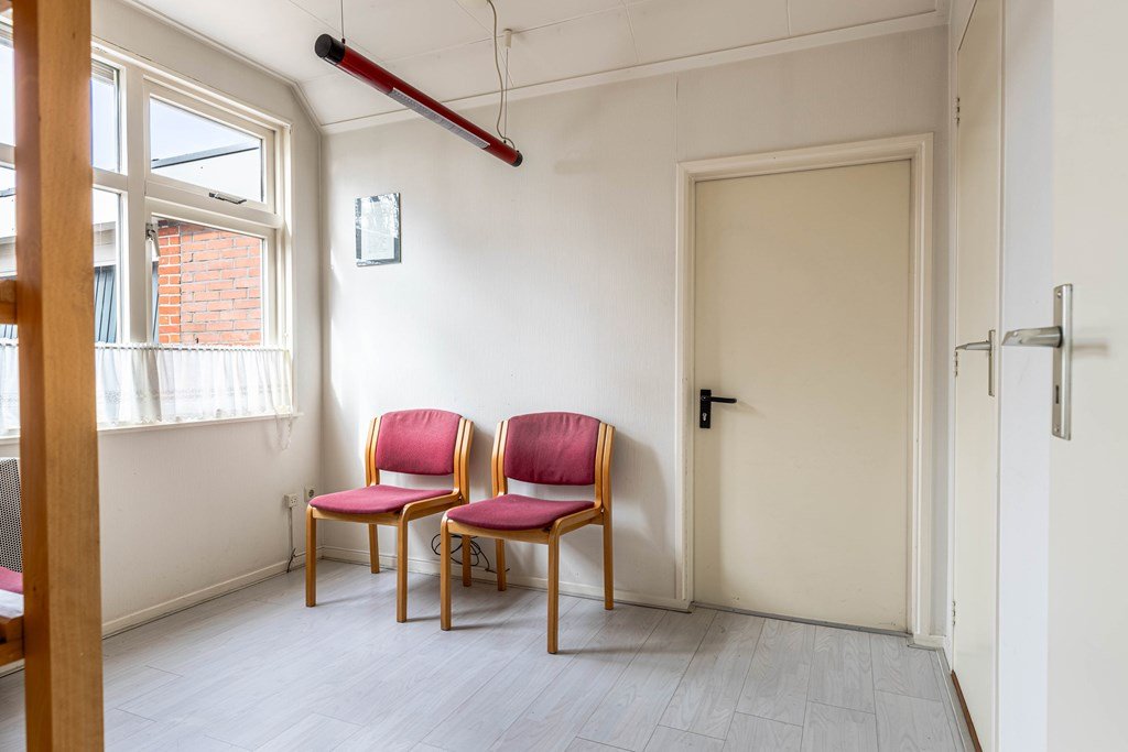 In dit deel van de woning is geen trap naar de verdieping. De zolderruimte boven het kantoor is bereikbaar via de eerste verdieping van nummer 257.