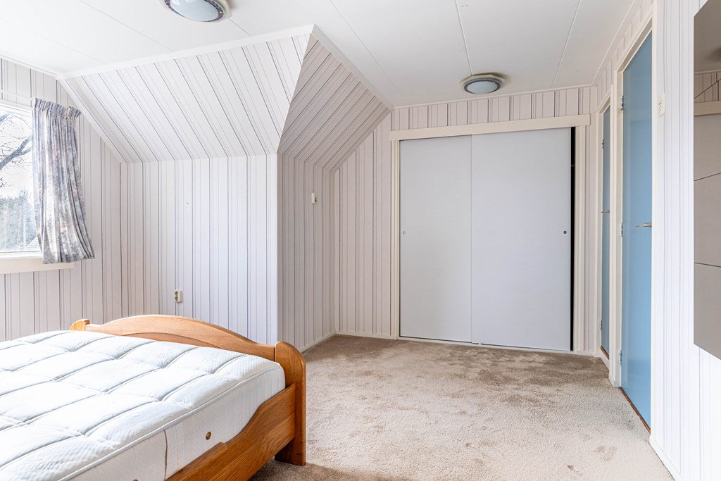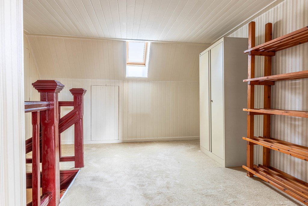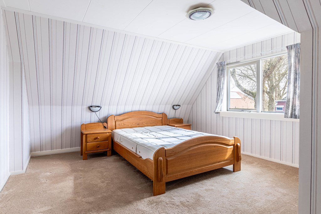 Op de eerste verdieping bevinden zich twee ruime slaapkamers. Daarnaast is er een berging aanwezig welke mogelijkheid geeft tot extra slaapkamers, en biedt de verdieping veel extra bergruimte dankzij inbouwkasten en praktische schotten.