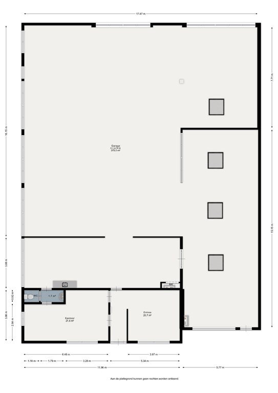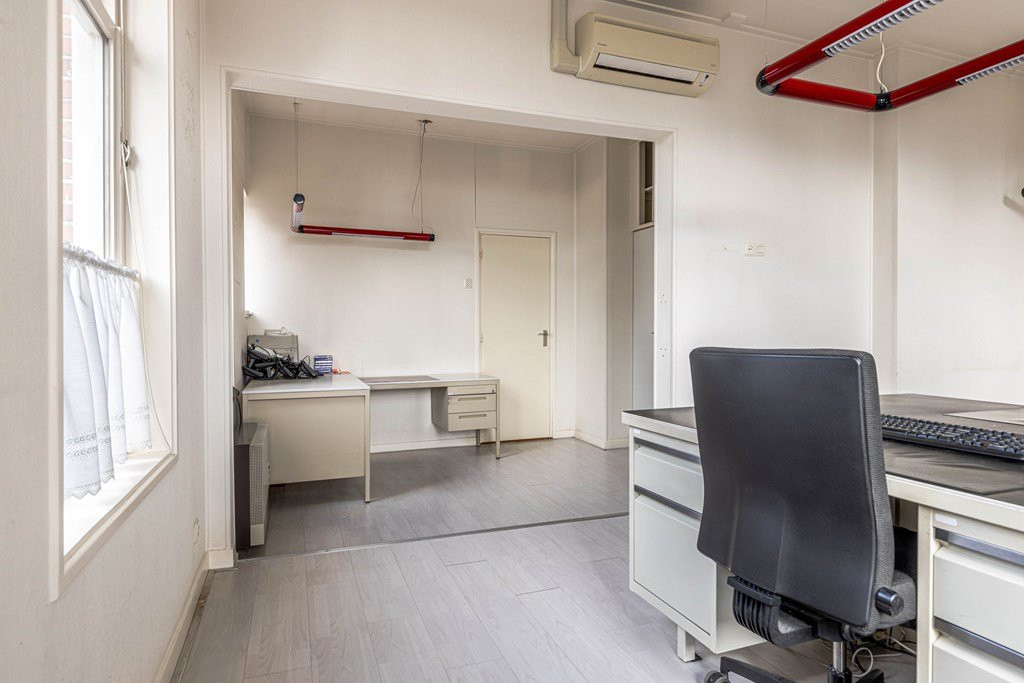 Dit deel is nu in gebruik als kantoor met eenvoudige open keuken, toilet, spreekkamer en een kluis/archiefruimte. Onder dit deel een aparte kelderruimte dat voor opslag kan worden gebruikt.